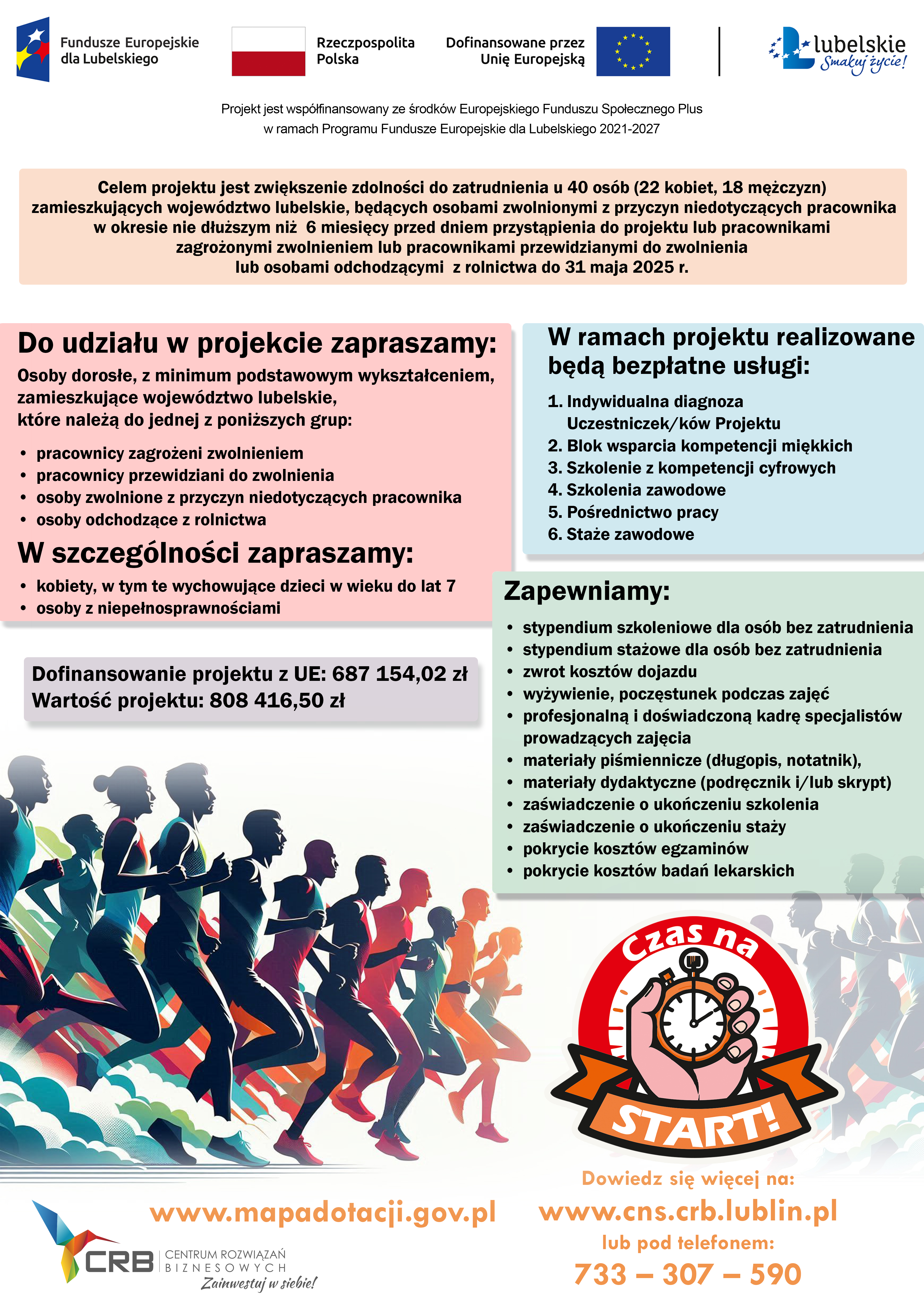 Szczegółowe informacje dostępne są pod numerem telefonu: 733 307 590 lub na stronie internetowej projektu: www.cns.crb.lublin.pl.